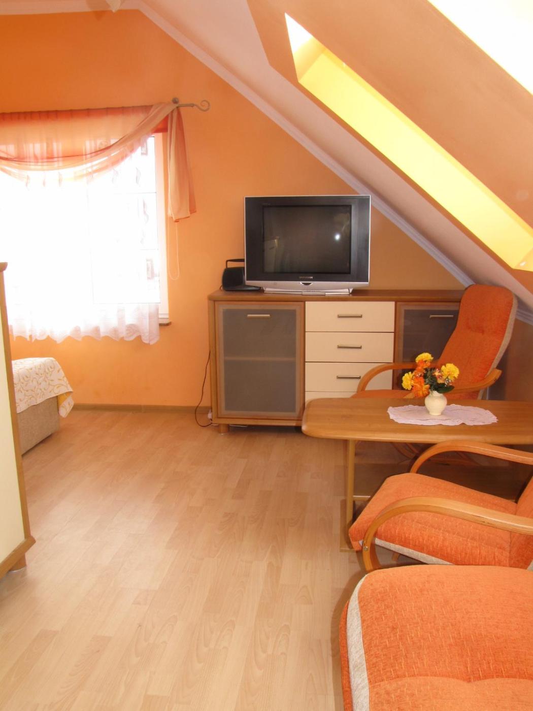 Pokój Dwuosobowy (1 osoba dorosła + 1 dziecko). Providing free toiletries, this double room includes a private bathroom with a shower and a hairdryer. The double room provides a tea and coffee maker, a barbecue, parquet floors, heating and a flat-screen TV. The unit offers 1 bed. Pokój Dwuosobowy - 2 osobowy. Powierzchnia pokoju ok.: 8 mkw.