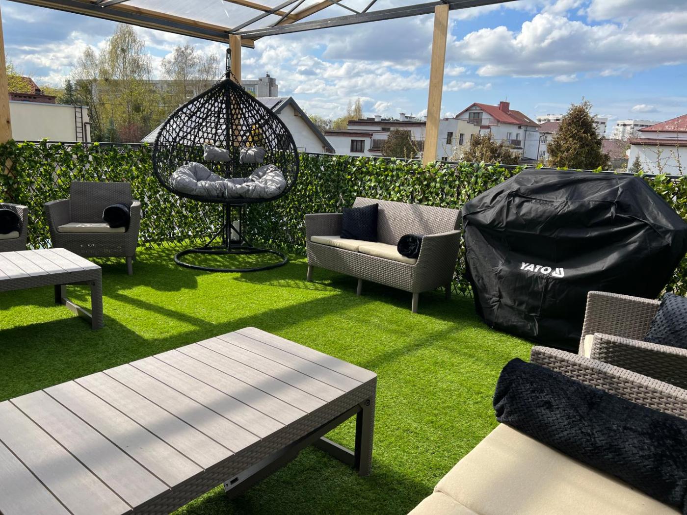 Apartament z 3 sypialniami. Boasting a private entrance, this air-conditioned apartment includes 1 living room, 3 separate bedrooms and 2 bathrooms with a walk-in shower and a bath. Guests will find a stovetop, a refrigerator, a dishwasher and kitchenware in the well-fitted kitchen. The apartment also features a barbecue. The spacious apartment offers a tea and coffee maker, a seating area, a dining area as well as a terrace with garden views. The unit has 6 beds. Apartament - 11 osobowy. Powierzchnia pokoju ok.: 80 mkw.